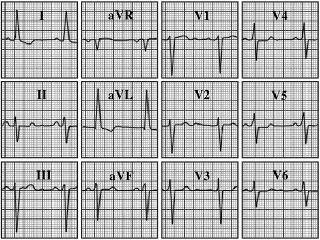 This electrocardiogram shows a non-specific intraventricular conduction delay. It is reflected by a