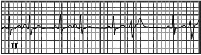 This is our patient's rhythm strip. It was obtained during an episode of palpitations.