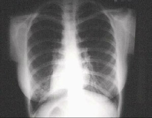 cardiac apex on the right. Note that the stomach bubble is also on the right, thus demonstrating situs inversus. While dextrocardia may be found in patients who are otherwise normal, when it occurs in the absence of situs inversus, a very high incidence of congenital heart disease is found.